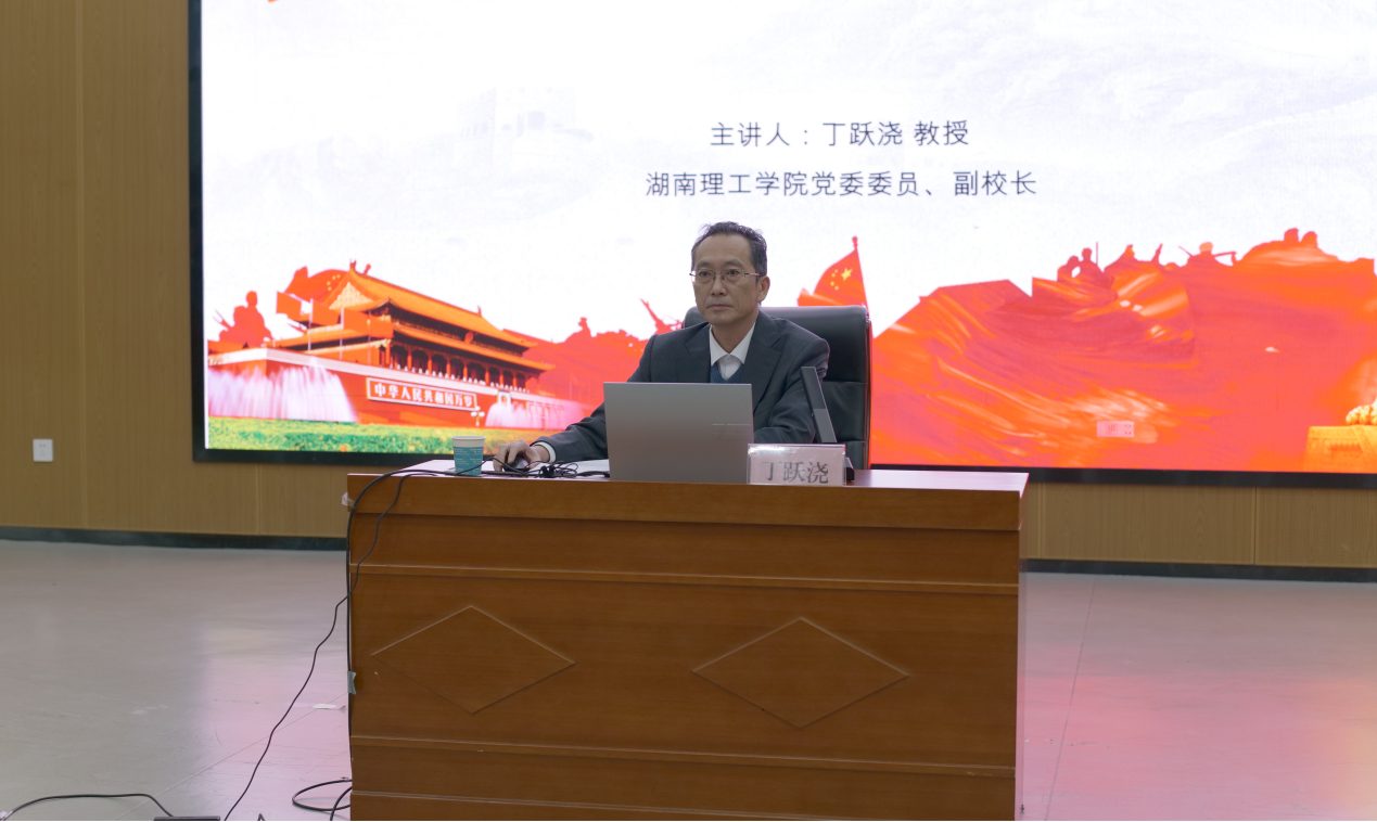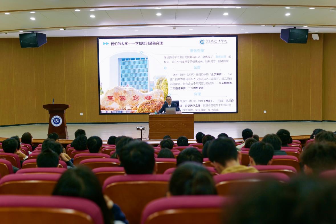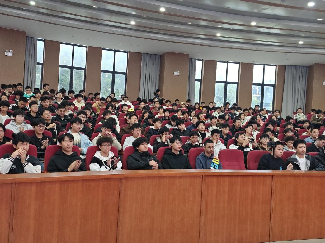 为帮助新生深入了解校史校情,明确学习目标,树立理想信念,10月21日下午,我院在17118学术报告厅成功举办“校领导与新生面对面活动”。此次活动特邀校党委委员、副校长丁跃浇主讲,由学院党委书记徐丹主持,学工办主任李罗娜、2025级楚怡工匠班班主任管世望、辅导员李紫薇、吁锤、王荣荣、方从戎出席,2025级本科生(含楚怡工匠计划)及研究生参加。