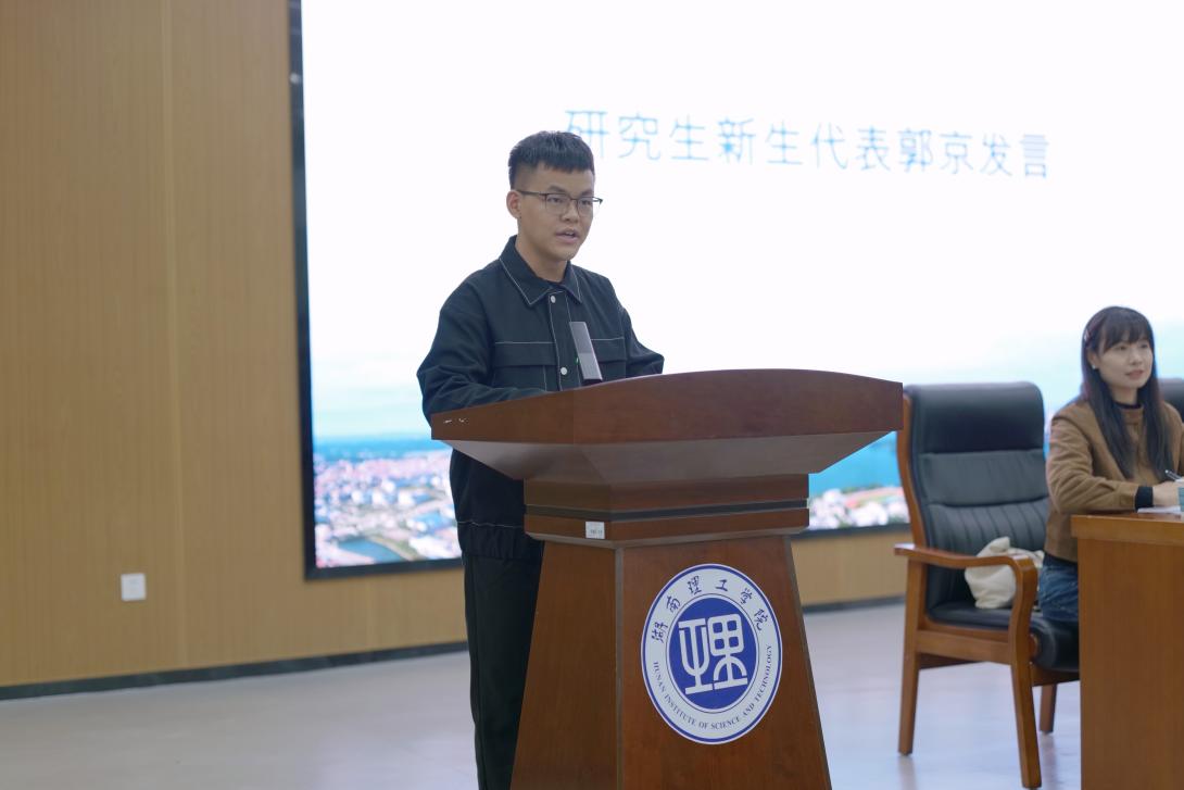 典礼伊始,全体人员起立奏唱中华人民共和国国歌。副院长(主持工作)周勇围绕学校与学院发展历程、学科优势及未来规划展开讲话,帮助新生全面认识学院发展前景。副院长张敬聚焦本科教学与实践环节,详解课程体系、实践平台及人才培养目标。副院长谭晶莹针对研究生教育与管理工作进行讲解,为研究生新生明确学术方向。随后,研究生新生代表郭京发言,分享入学感悟与未来规划,展现新生蓬勃朝气。