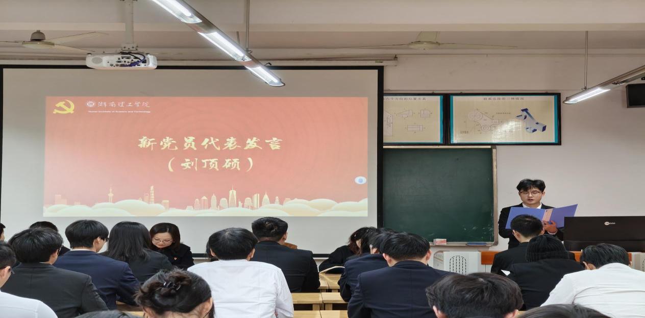 预备党员代表刘顶硕分享其思想成长的历程与加入党组织的激动心情。他表示,将把入党作为人生的新起点,时刻以党员标准严格要求自己,加强理论学习,积极投身实践,在学习和工作中发挥先锋模范作用,不辜负组织的培养与信任。