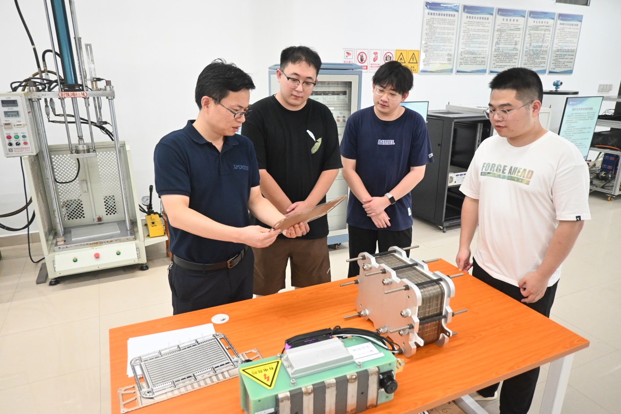 博士毕业后,张敬第一时间回到湖南理工学院。带着企业实践的宝贵经验和博士阶段的理论积累,他开始以更广阔的视野规划自己的教学与科研之路。立足岳阳市电磁装备产业的发展特色和需求,围绕“电磁”技术做文章,率先聚焦电磁控制领域开展研究,带领团队攻克了多项技术难题,成功申报电磁搅拌方向国家自然科学基金项目“基于非线性时延反馈控制的混沌电磁搅拌技术研究”,为区域装备制造业升级提供了理论支撑。伴随着国家“双碳”战略的深入推进,也为了持续开展有组织的科研,他利用所学专长加入氢能技术研究团队,主动将研究重心转向氢能源领域,深耕燃料电池系统集成与控制方向,同时利用前期研究基础开创了磁场驱动改善燃料电池性能研究这一新方向,实现了科研方向与国家战略、地方发展、学院学科建设的同频共振。