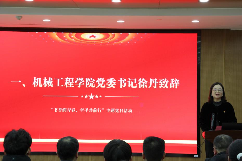 机械工程学院党委书记徐丹致辞。她指出,机械工程学院肩负着培育高素质机械领域人才、服务国家制造业高质量发展的重要使命,希望全体党员以书籍为精神纽带,坚定理想信念、锤炼过硬本领,在支部联建中互学互鉴、共同提升,凝聚党建育人的强大合力。