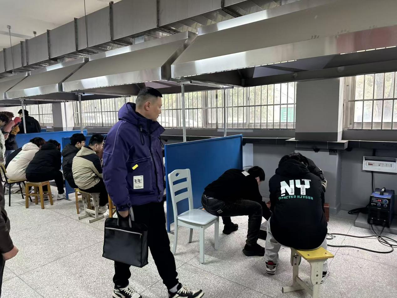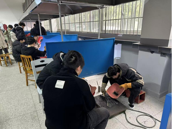 贴合应届毕业生学习特点,本次培训课程设计兼具科学性与实用性。培训摒弃“纯理论枯燥难吸收”“盲目实操缺方法”的传统弊端,采用“基础理论铺垫+实操技能锤炼”的渐进式教学模式,从电焊基础原理、安全规范等理论知识入手,逐步过渡到实际操作训练,让学员既能筑牢知识根基,又能熟练掌握实操技巧。课程全程严格对标初级电焊工职业技能标准,基础理论课程在16121实验室和16219机房完成,由罗云和杜青林老师授课;实操技能课程在16127焊接实训室完成,由任继红老师授课。