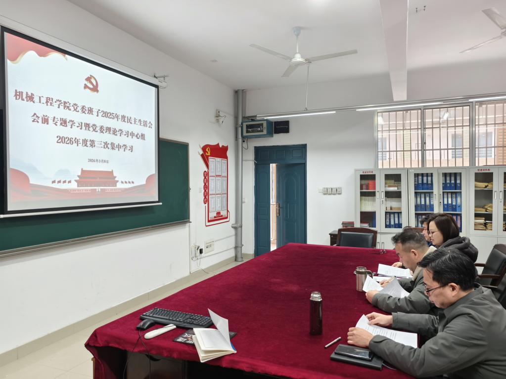 3月8日10:00,机械工程学院党委理论学习中心组在16301B教室举行2026年度第三次集中学习,进行民主生活会会前专题学习。会议由党委书记徐丹主持,全体中心组成员参会。