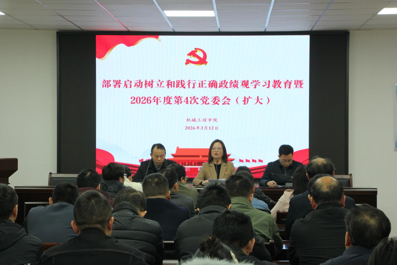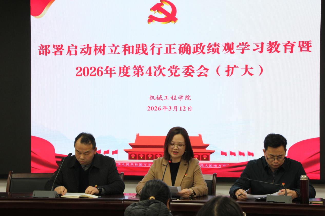 3月12日9:00,我院在16302会议室召开部署启动树立和践行正确政绩观学习教育暨2026年度第4次党委会(扩大)。会议由学院党委书记徐丹主持,学院党委班子成员、各党支部书记、全体教师、学生党员参会。