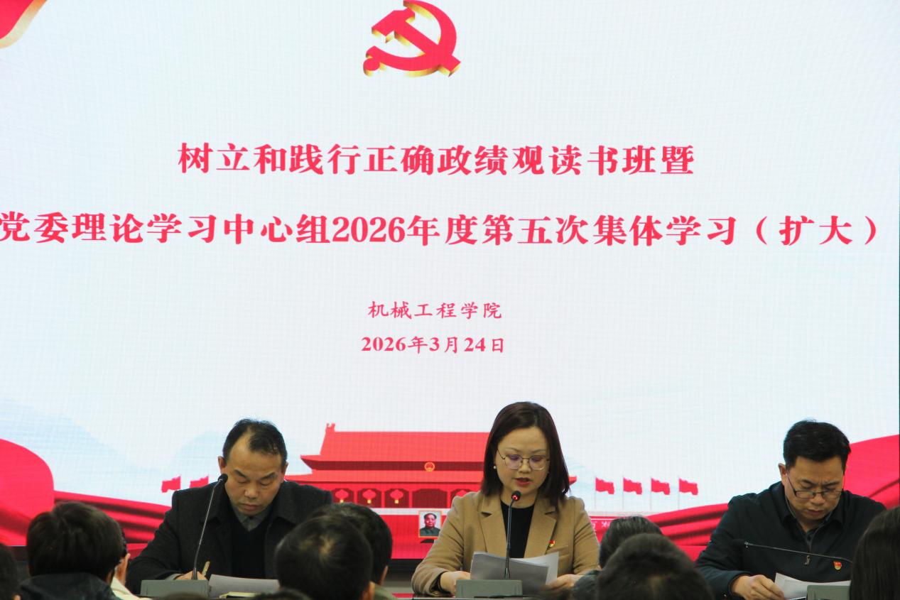 3月24日下午,我院在16302会议室举行树立和践行正确政绩观读书班暨党委理论学习中心组2026年度第五次集体学习(扩大)会议。会议由徐丹主持,党委理论学习中心组成员、全体教师、学生党员参会。