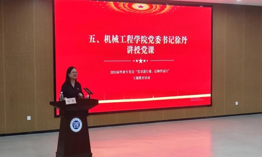 5月26日,我院在17102教室举行“党章进行囊,信仰伴远行”主题教育活动。通过重温入党誓词、赠送信仰礼包等,鼓励党员同志将个人理想融入国家和民族的事业之中。同时,徐丹书记以“弘扬优良作风,做强国建设好青年”讲授党课,解读中央八项规定精神实践要求,勉励毕业生党员把优良作风内化为职业素养,用行动擦亮党员身份。