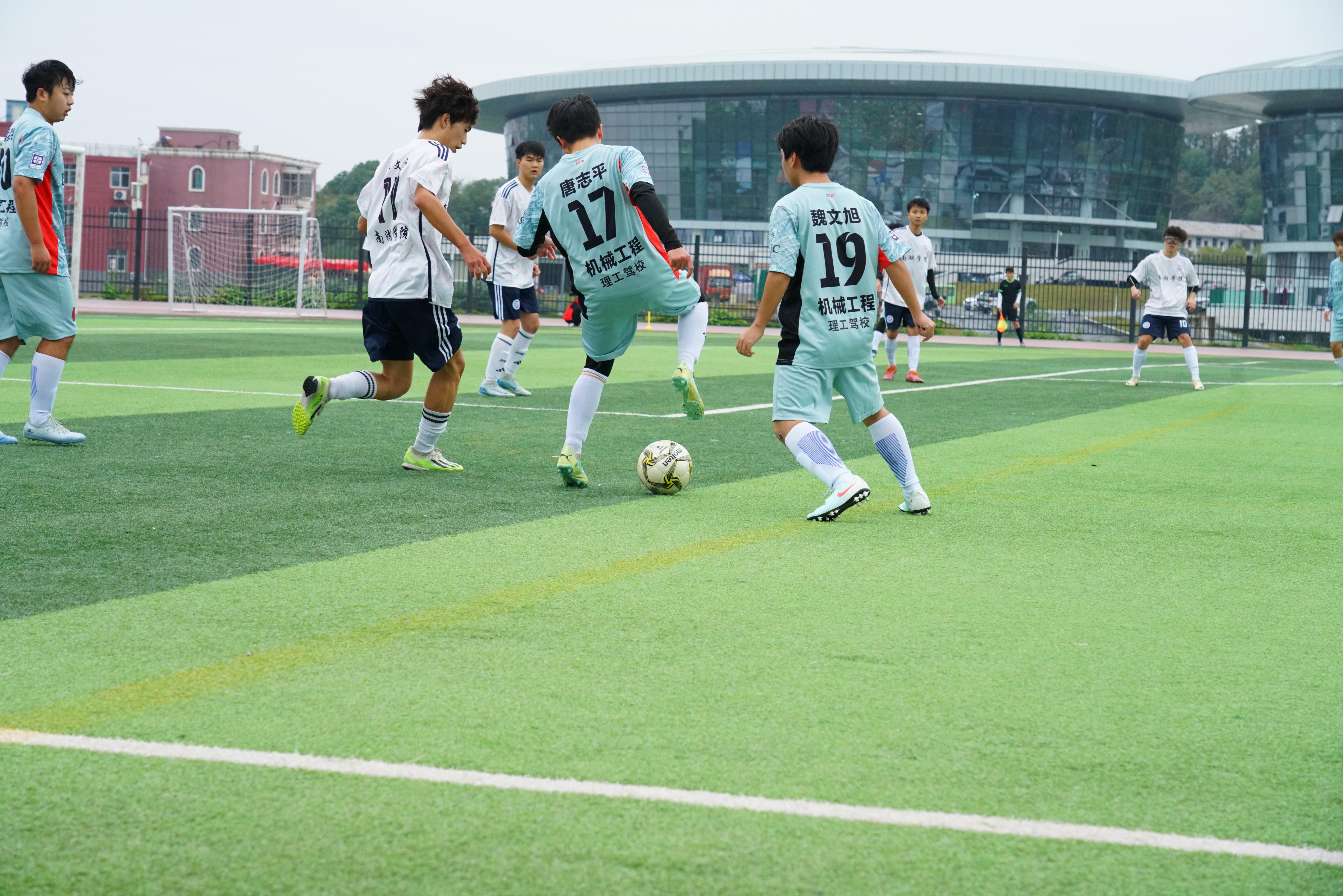 雨水浇不灭热血,绿茵场见证拼搏!近日,湖南理工学院的雨幕中,机械学院足球队与南湖学院足球队展开了一场激烈对决,最终我院球员们用汗水书写荣耀,以4:1的比分强势取胜,现位列小组第一!