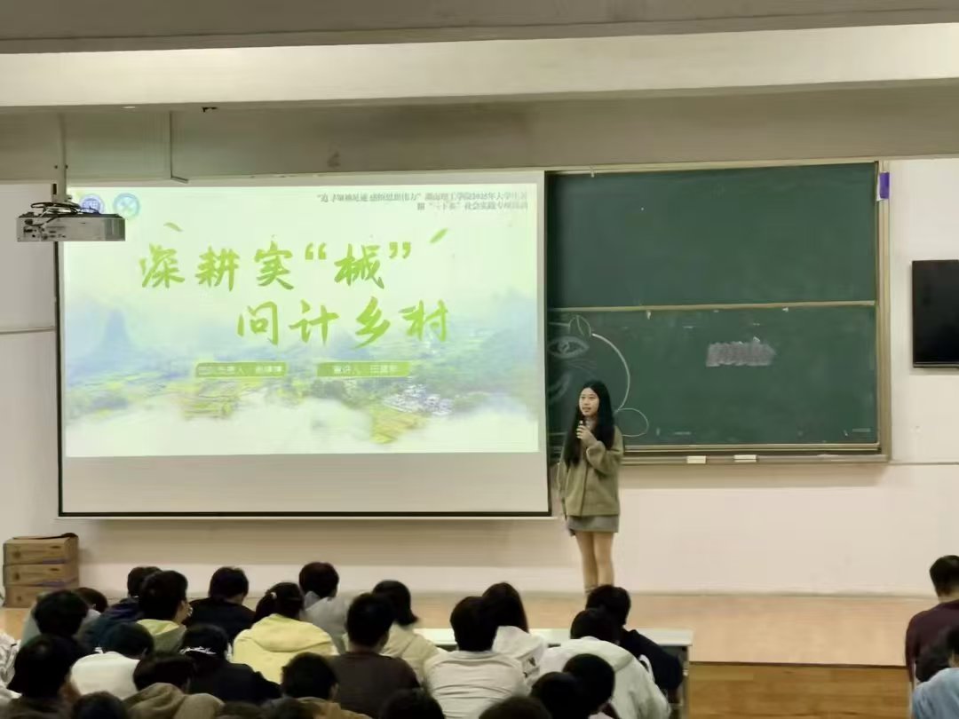 11月5日,我院于9T1教室举行“追寻领袖足迹·感悟思想伟力”暑期“三下乡”社会实践巡回宣讲会。作为全校巡回宣讲重要一站,此次宣讲既是实践成果集中反馈,也延续了我院实践团队跨院分享的良好态势。全院师生积极响应,团委书记方从戎老师、“深耕实‘械’问计乡村”团队指导教师曾英姿老师、学生负责人及25级同学齐聚现场,共学实践经验、共悟思想伟力。