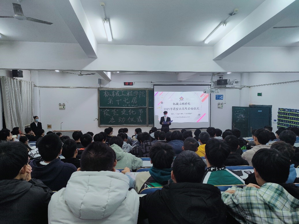 为进一步提高我院寝室文明建设,营造良好的宿舍文化氛围,11月22日晚上7点,机械工程学院第十七届主题为“与信仰相伴,与青年同行”的寝室文化节启动仪式于15217教室举行。团委书记刘尘轩、学生会主席团全体成员、全体21级寝室长、生活委员和19、20、21级班长到场参加。