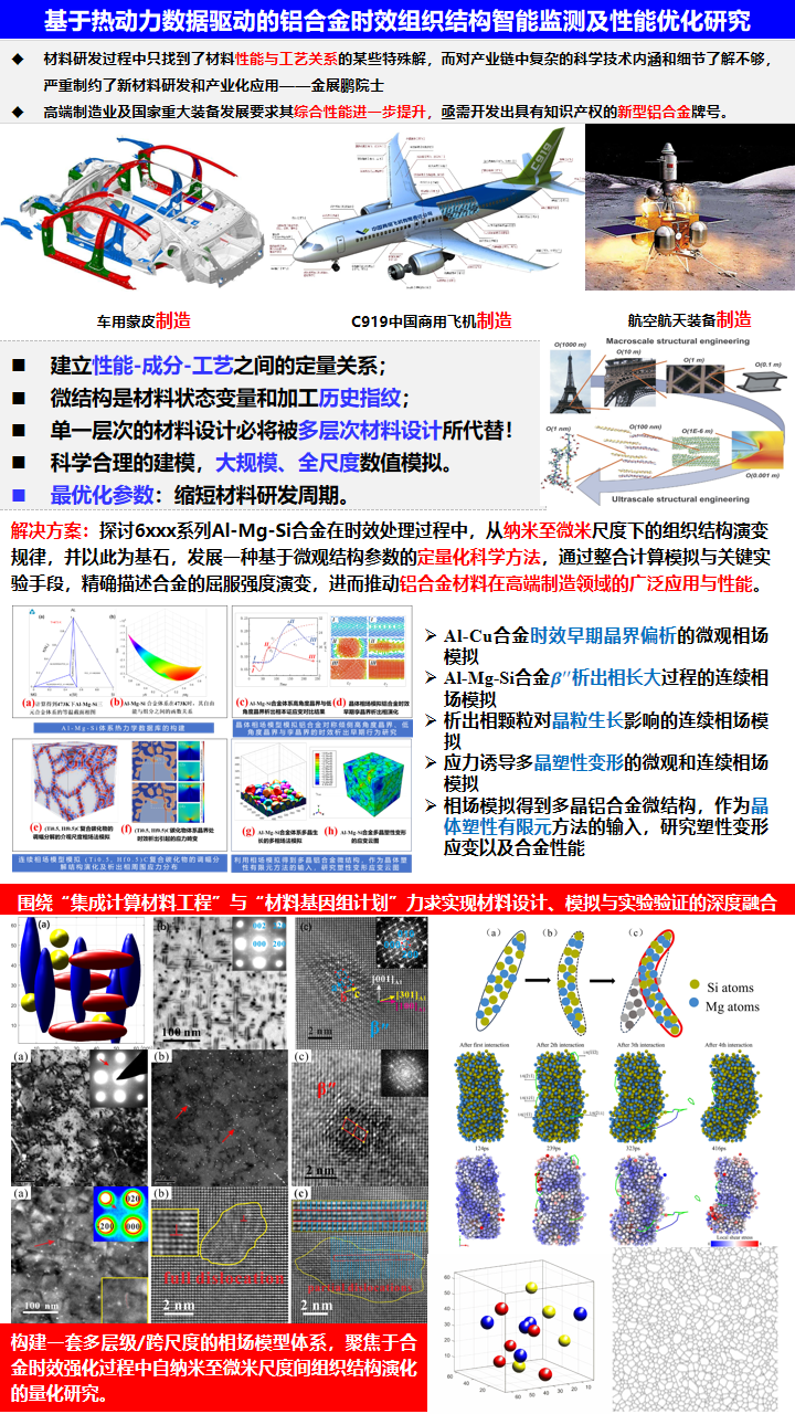 材料微观组织结构演化研究;轻质高强铝合金、镍基高温合金设计;相图热力学计算研究;合金腐蚀;多物理场耦合的定量化研究;材料模拟软件开发;有限元分析、第一性分子动力学模拟。
